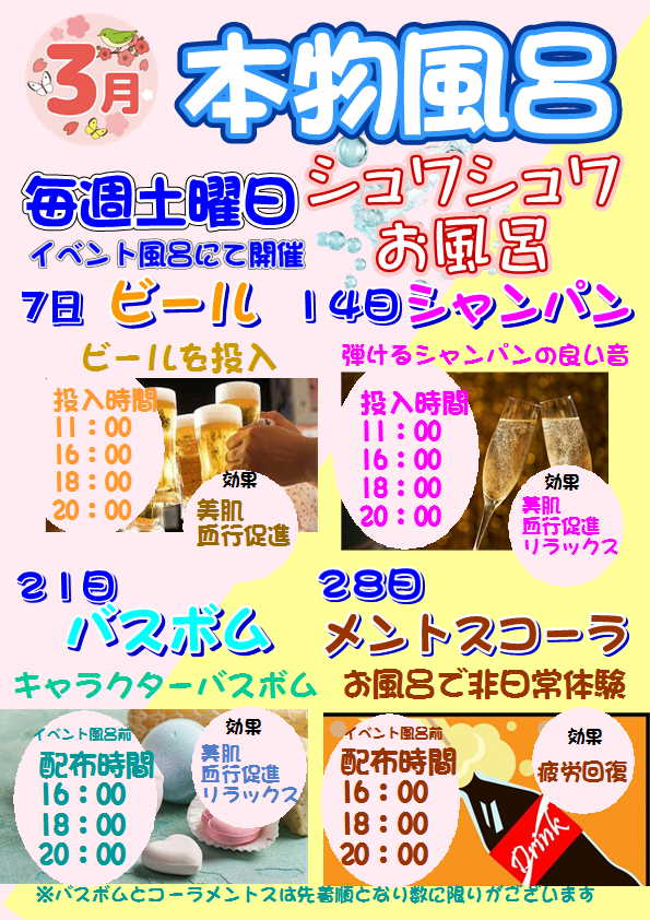 【予告】3月本物風呂は『シュワシュワ風呂』特集